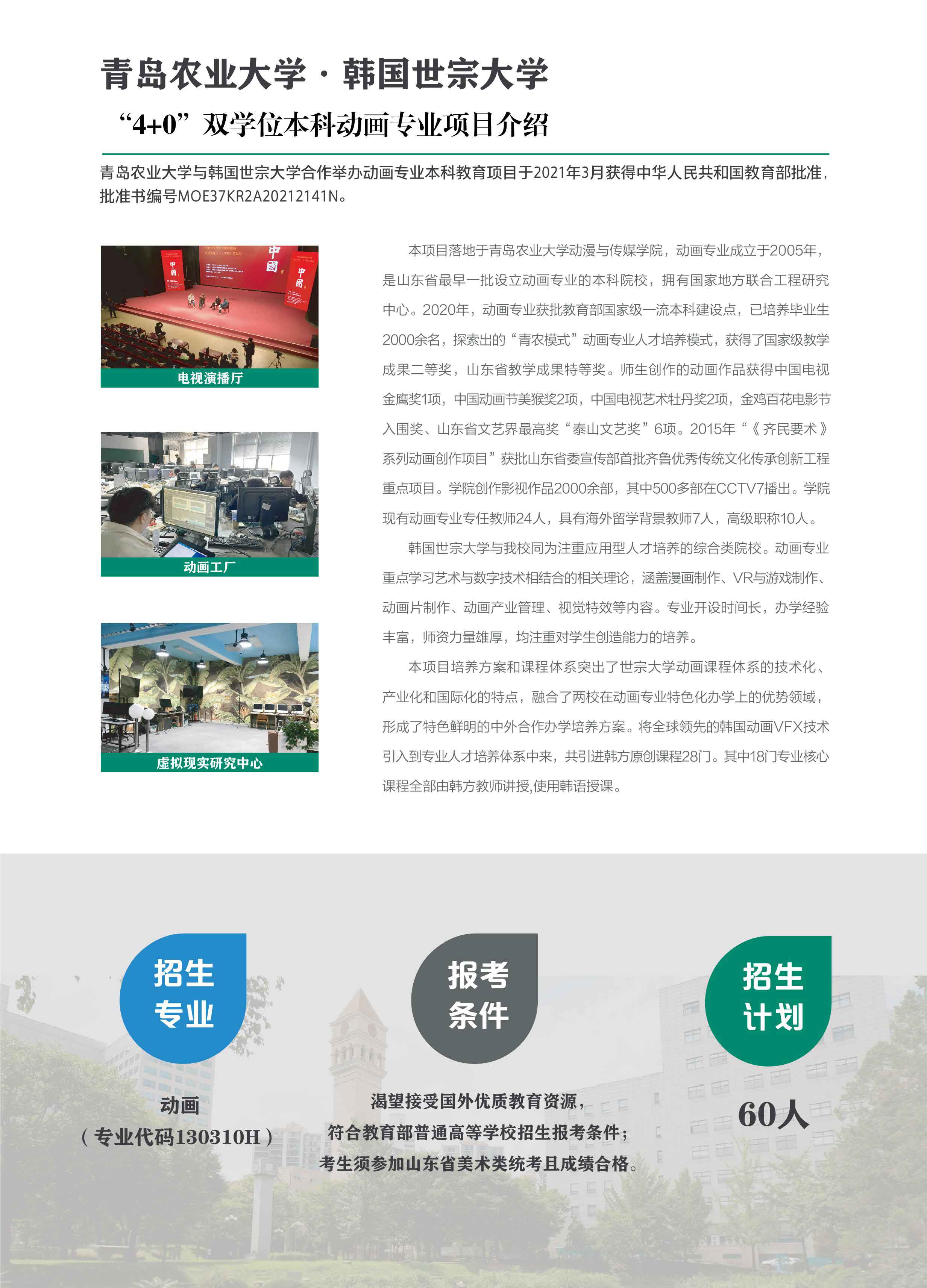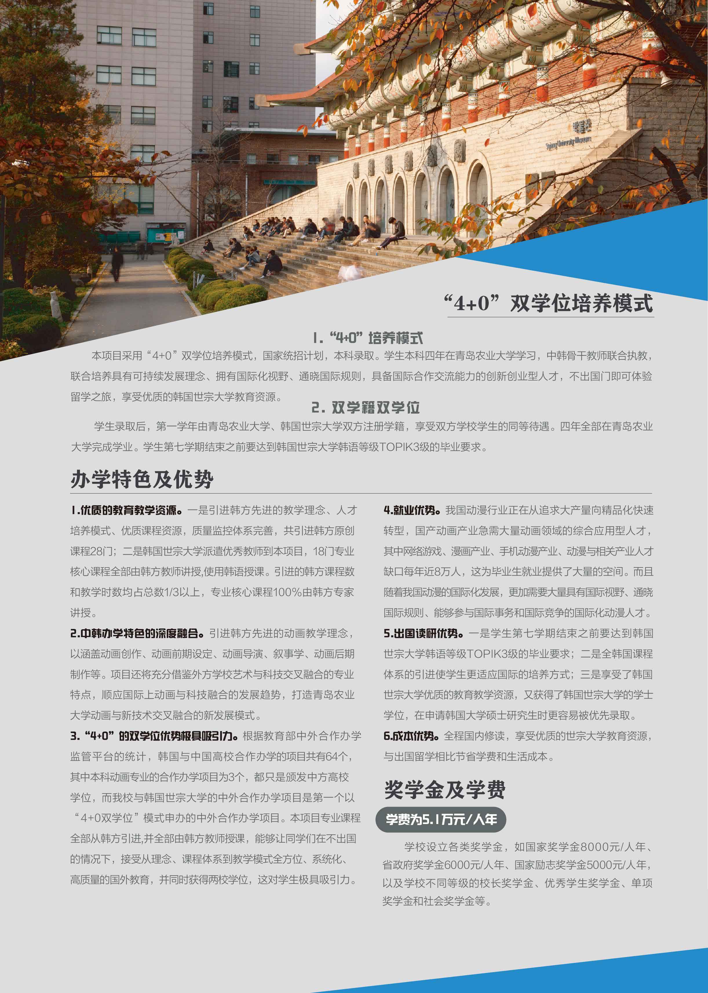 青岛农业大学与韩国世宗大学动画专业 “4+0 ”本科中外合作办学-